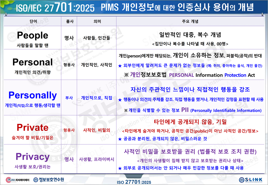 * ISO/IEC 27701:2025 개인정보보호 경영시스템 연수과정 개요 (PIMS 국제인증심사원)
