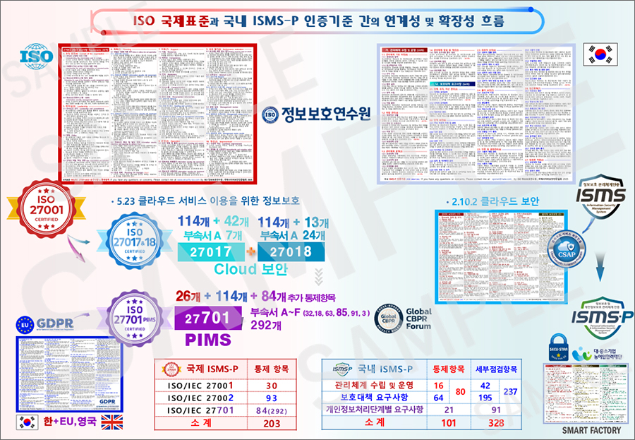 국제표준 ISO/IEC 27001과 국내 ISMS-P 인증기준 간의 연계성 및 확장성 흐름도