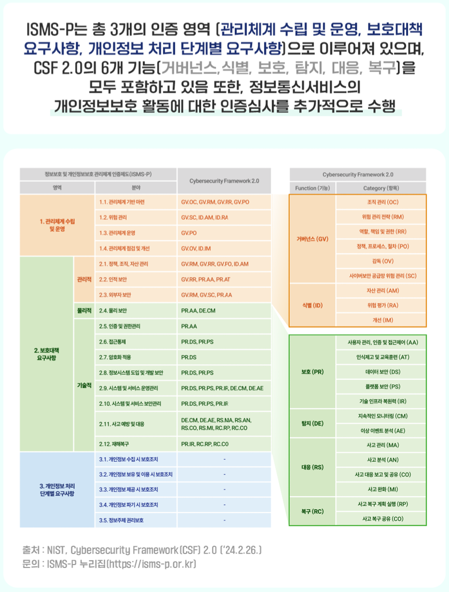 ISMS-P 인증과 미국 NIST Cybersecurity Framework(CSF 2.0) 비교