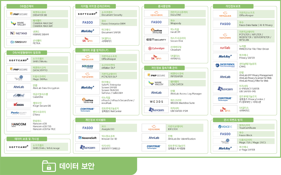 DB보안(접근통제)은 데이터베이스 및 데이터베이스 내에 저장된 데이터를 인가되지 않은 변경, 파괴, 노출 및 비일관성을 발생시키는 사건으로부터 보호하는 보안 솔루션. DB암호는 데이터의 실제 내용을 허가받지 않은 사람이 볼 수 없도록 은폐하기 위해 데이터를 암호화하는 보안 솔루션 |